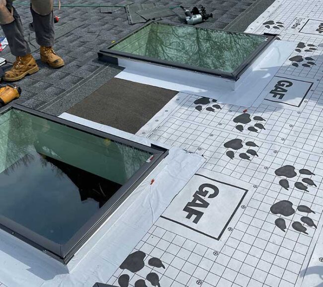 For this roof replacement, we started by thoroughly inspecting and assessing the existing roof to determine its condition and that of its dependent parts. Then, we prepared the site by removing old shingles and damaged decking and replacing all necessary sections.